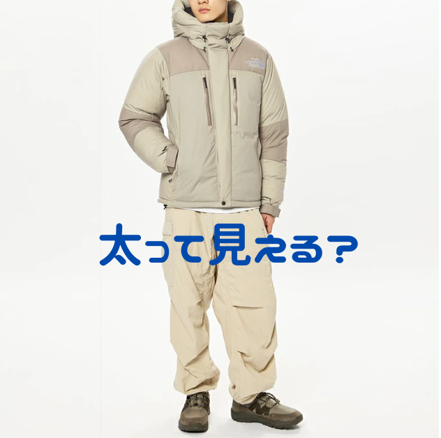 まず、ジャケット自体のデザインに豊富なダウンが使われており、とくにフードや腕周りが非常にボリューミーで膨らんで見えるため、着ると全体的に大きく「太って見える」印象を与えやすいです。見た目の膨張感が強いことで、スリムな体型でない人が着ると相乗効果でより太って見えることがあります。